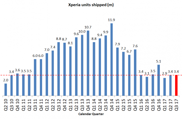Sony shipped 3.4 million Xperia units during the quarter, which is broadly in line with the same quarter last year. This performance was clearly not in line with Sony’s own expectations though, as it has lowered its full year unit forecast from 16.5 million units to 15.5 million units. Despite lower shipments, Sony still expects to maintain operating income of 5 billion yen for the full year through a further reduction in operating costs.
