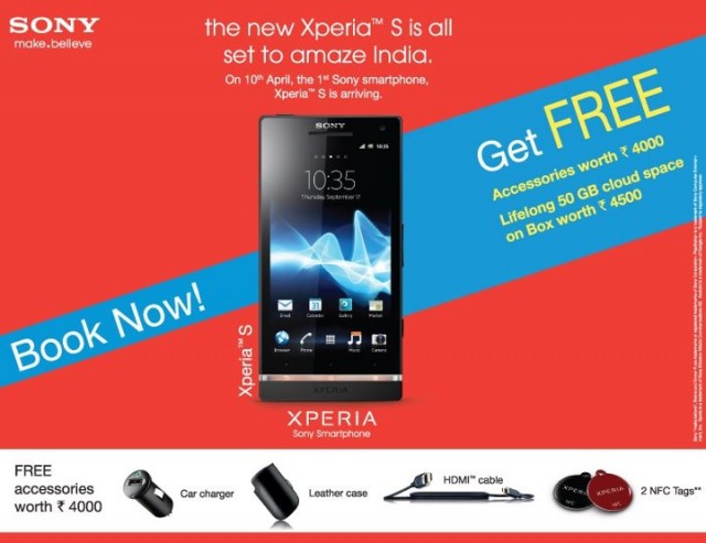 Sony Mobile India has confirmed that the Xperia S will be released in the country on 10 April 2012. Whilst no details of pricing were given, Sony will be including a number of accessories with the Xperia S including a car charger, leather case, HDMI cable and two NFC SmartTags. The free accessory pack is a limited “early bird offer” according to the company so you’d better get your order in quick.