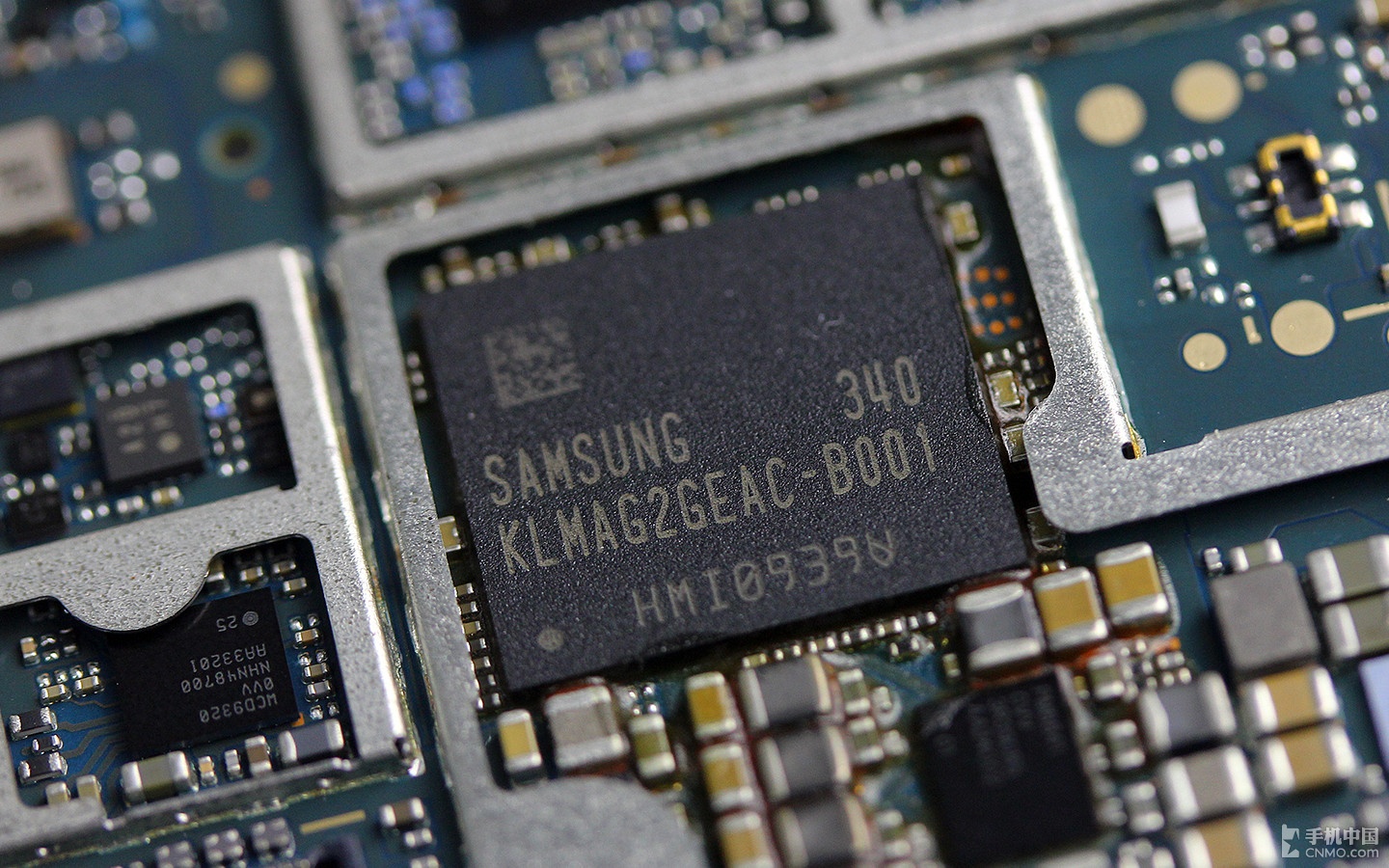 Here you can see the Samsung 16GB internal storage chip (340: KLMAG2GEAC-B001). This uses eMMC version 4.5 with the eMMC Pro Class2000.